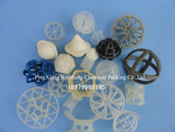 塑料散堆填料主要包括:多面空心球、花环、海尔环、阶梯环、共轭环、鲍尔环、矩鞍环、异鞍环、扁环、拉西环、雪花环、六棱形环、旋转环、五角环、锥形环、网环、十字球形环、浮球、液面覆盖球、菱形覆盖球等、/span>