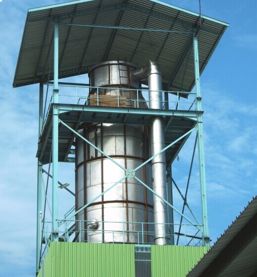 内部加热的喷雾干燥塔LPG-400喷雾干燥塔是空气经过滤和加热,进入干燥器顶部空气分配器,热空气呈螺旋状均匀地进入干燥室,料液经塔体顶部的高速离心雾化器或高压雾化器,喷雾成极细微的雾状液珠,与空气并流