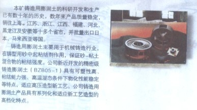 本矿铸造用膨润土的科研开发和生产已有数十年的历史,数年来产品质量稳定,销往上海,江苏,浙江,江西,福建,河北,黑龙江及安徽等十多个省市,并批量出口日本,马来西亚等国、br/>铸造用的膨润土主要用于机械铸造行业,在铸型用砂中起粘性剂作用,保证砂-粘土混合物的粘结强度。公司新近开发的精密级铸造膨润土(BZB05-1)具有可塑性高,黏性能力强,高温湿态条件下物化性能稳定等特点,适应高压造型新工艺。公司铸造用膨润土产品具有系列化和适应新工艺造型高档化特?