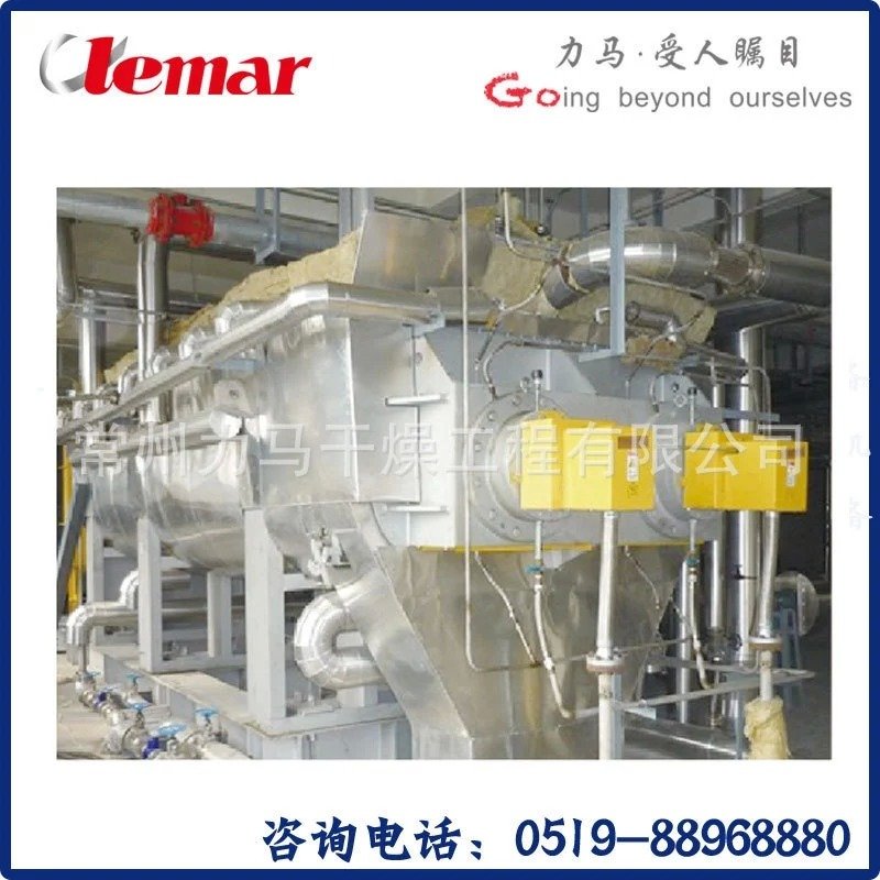 空心双桨叶预干燥、蒸汽管回转干燥(或桨叶干?的两级干燥工艺, 用啮合型的双轴桨叶式干燥机作为预干燥机,其具有自清理和防粘壁的作用,预干燥后 的物料再进入到二级蒸汽管回转干燥机进一步干燥,即可解决CIA/PIA干燥易粘壁, 洗周期频繁的问题、/p>