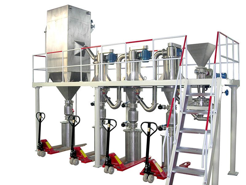 '/span>4)旋风收集器:该设备是分级产品中的一级收集系统,含尘气流进入旋风收集器后,由于离心力的作用,粉料沿筒壁下滑,在内锥筒尾部被分离并净化。净化后的气体及少量微粉经过旋风中心管排出、/span>