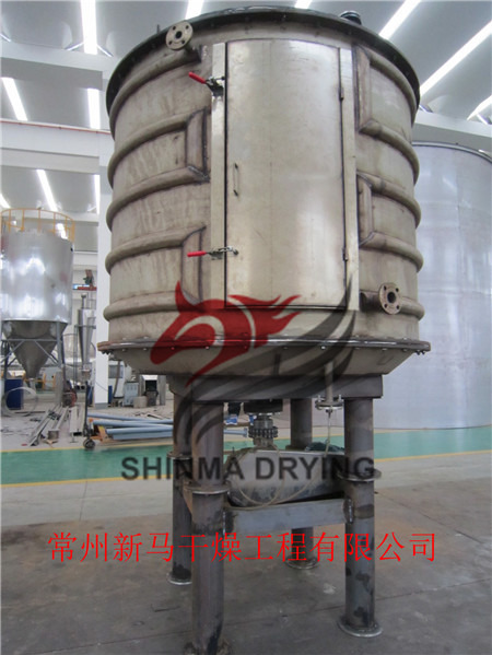 湿物料自加料器连续地加到干燥机的?层盘上,带有耙叶的耙臂做回转运动,使耙叶连续地翻转物料,物料沿着指数螺旋线流过干燥盘表面,在小干燥盘上的物料移到外缘,并在外缘落到下方的大干燥盘外缘,在大干燥盘上的物料向里移动并从中间落料落入下一层小干燥盘中,大小干燥盘上下交替排列,物料得以连续地流过整个干燥机,中空的干燥盘内通入加热介质热水,热水从一端进入另一端导出,已干燥物料从*后一层干燥盘落到壳体底层?后被耙叶移动到料口排出。底部排出的干物料进冷却后直接包装、/p>