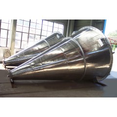 楔形空心桨叶干燥(冷却)机是以传导为主的间接加热低速搅拌型干燥/冷却设备,搅拌轴田/span>楔形空心桨叶和具有特殊结构的空心轴组成,在对滤饼、粉末、颗粒物料的干燥/冷却过程中,一对楔形桨叶轴做相对转动时,物料在楔形桨叶轴间产生挤压和松弛作用,桨叶的自清洁功能使得?/span>湿物料不断交替更?/span>,热量通过桨叶表面和夹套间接传递给物料,达到快速干?/span>/冷却目的、/span>