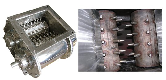 该系列破碎机为两组对辊式结构,两组动辊分别做相对运动,物料从中间经辊压而破碎,根据物料不同,转子可以为实心辊或者钩状滚筒,主要用于化工脆性物料和颜(染)料的破碎?nbsp;