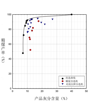 螺旋分选机入料配给要求高,分选精度差,分选密度高,分选槽体易磨损,单容量低,产品质量易波动,维护费用高、/span>
