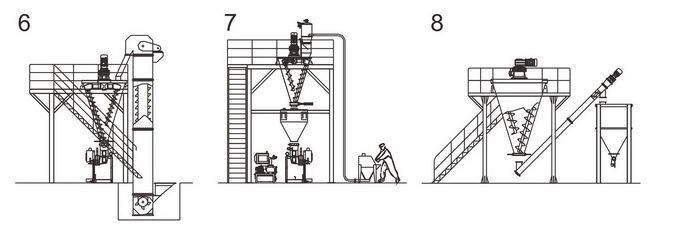 配置19/strong>锥形混合设备配合斗式提升机、自动包装机组成的简易生产流程;