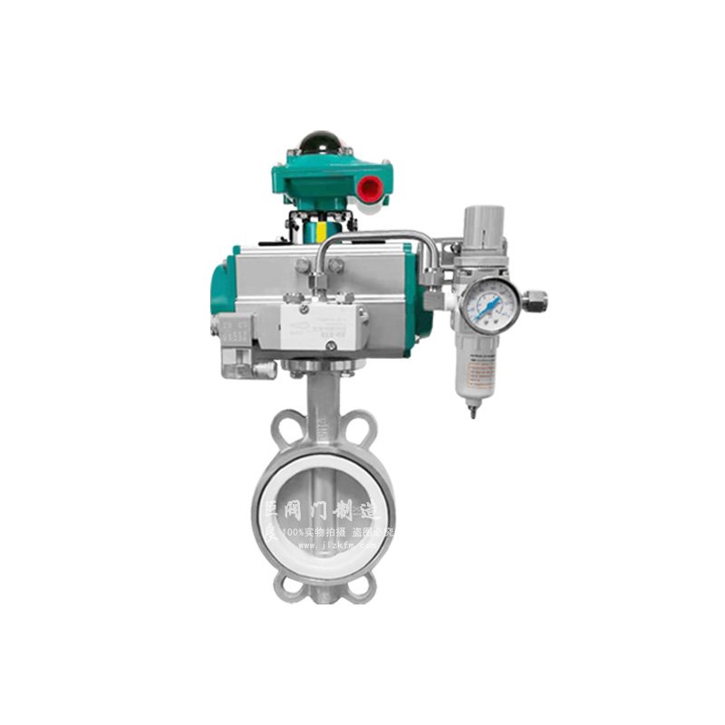 - 巨良JL气动法兰四氟蝶阀D641F-16Q不锈钢耐酸碱AT气缸开关阀耐腐蚀调节