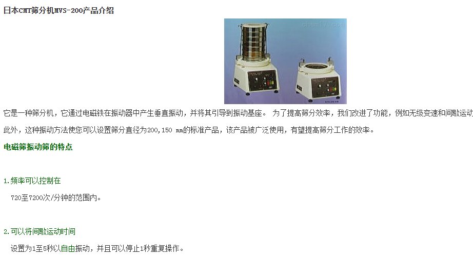 日本CMT 电磁筛振动筛分机MVS-200参数 >