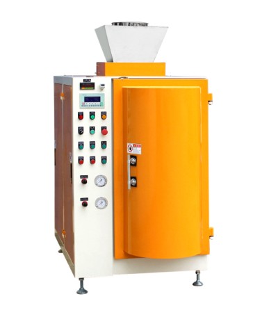 JKF-159C系列包装机采用真空吸入物料的方式给料。包装袋放置在密闭的真空仓内,物料通过负压吸引作用进入包装袋内,同时物料中的气体通过包装袋的气孔排出。当填充到包装袋内的物料重量到达预设的重量值时,真空泵停止运行,同时真空仓门打开,人工取下包装好的包装袋,即完成单袋包装、/span>