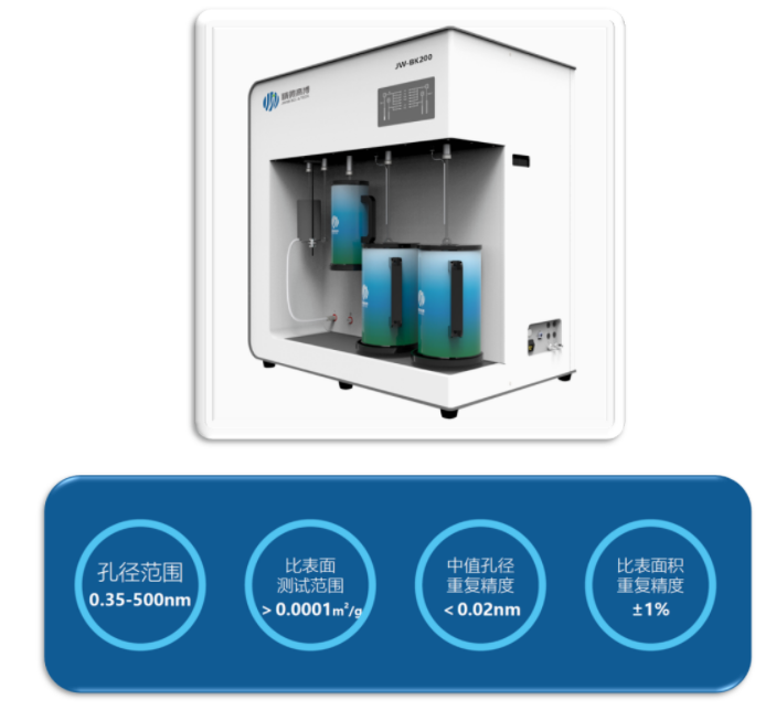 实验中用到的比表面积测试仪为JW-BK200C比表面及孔径分析仪,JW-BK200C比表面及孔径测试仪配?torr/0.1torr高精度小量程传感器,?0-8Pa涡轮分子泵,适合分子筛、催化剂、活性炭等多微孔样品的超微孔分析、br style="box-sizing: border-box;"/>