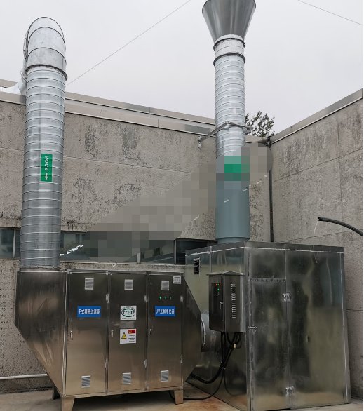 1、风罩收集→管道→设备前段初效过滤→一级UV光氧净化→二级活性炭吸附→风机→控制系统→洁净排放