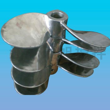 三叶推进式是典型的轴流型搅拌器,高排液量,低剪切性能;采用挡板或导流筒则轴向循环更强。排出性能明显提高,因为它循环能力强,动力消耗低,在低粘度,大容量均相、混合过程中应用*能体现它的优势,在低粘度的液体传热、反应、固液比小时的悬浮、溶解等过程中应用广泛。可调推进式的桨叶可转动?5�,调整倾角,在试验性的工艺过程中作用很大。可拆推进式的桨连轮毂分成三辨,组装方便,用在需要拆成小件的场合。常用介质?lt;2000cP 常用运转速度n=100?00rpm,v=3?5m/s?*转速可?750rpm,常用规格S/DJ=1?,DJ/D=0.2?.5,表面要求抛光处理的必须选用焊接型、/span>
