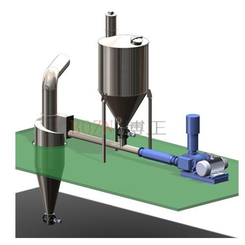 旋风分离?将物料与空气分离,物料会沿着分离器侧壁环形下坠,并由设备底部的旋转阀将物料送出分离?压缩空气则会在分离器中心向上排出,并通过处理设备进行净匕/p>