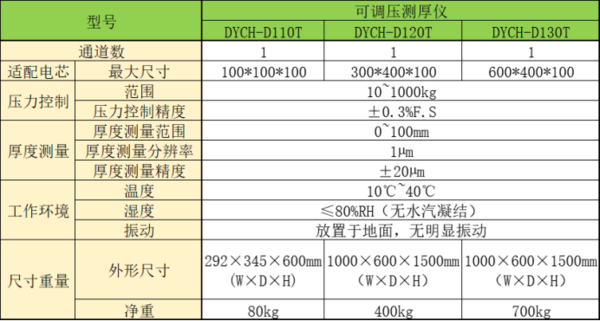 本设备是由伺服电机控制压力对电池进行施压,高精度测厚机构测量样品厚度,由数据采集系统进行数据收集并传输给软件端,然后通过数据处理软件进行初步处理并形成图表、表格,*终生成一份测试数据、/span>