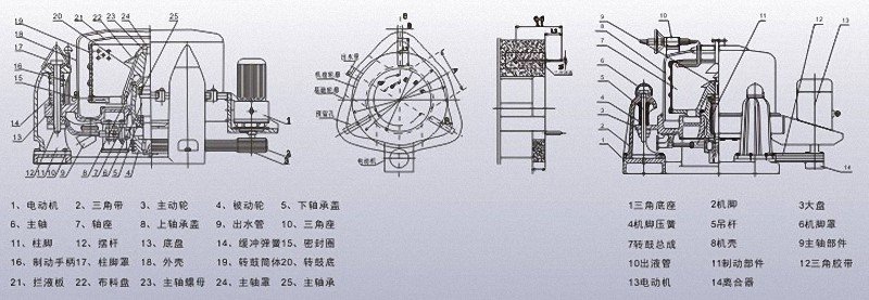 SX型三足式离心机为人工下部卸料、间歇操作的过滤式离心机。适合分离含固相(粒状、结晶状或短纤维状)浓度5一60%,粒度范?.5-1.5毫米的悬浮液。该系列离心机具有结构简单、操作方使,各操作工序可按要求任意调整,滤渣能得到充分洗涤,固相不易破损,适应性强等优点,由于是下部卸料,减轻了劳动强度,广泛用于化工、轻工、食品、制药、冶金等行业、br/>SXC为三足式下部人工卸料沉降离心机,该系列离心机转鼓为无孔壁,属沉降型转鼓。该离心机具有结构简单,性能可靠,操作维修方便等优点,主要适用于细粘性物料,及过滤物质再生困难的固液分离场合、br/>订货须知
