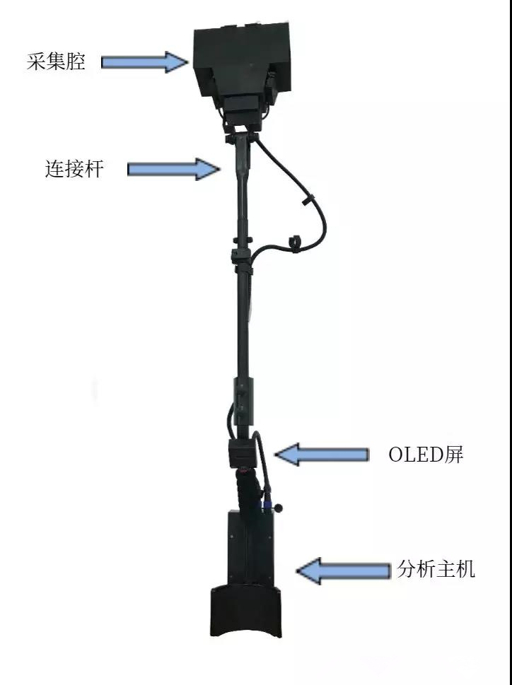 6.手机APP:支持手机APP,可替代手动操作设备结构及组成:伸缩连接杆,采集单元,OLED显示屏,分析单元、/span>