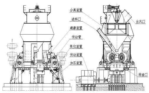 合肥中亚建材装备有限责任公司早在八十年代初就着手立式磨的研究工作,在广范收集国内外各种立式磨资料的基础上,吸收国外的先进技术,结合我国水泥工业特点而设计出了一种新型节能粉磨设备HRM型立式磨。它既具有LM立式磨能将磨辊翻出机外、检修方便的优点,又具有MPS立式磨辊套可翻面使用、寿命长的特点。HRM型立式磨是在原立式磨长期生产实践过程中,不断总结经验,同时对国内各行业使用的立式磨进行充分调查研究的基础上,对设备结构进行优化设计而成的粉料制备的专用设备(见下图)、/p>