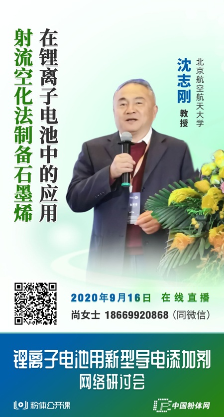 想知道更多关于射流空化法制备石墨烯的内容吗?欢迎参加中国粉体网旗下粉体公开课平台于2020??6日举办的首届“锂离子电池用新型导电添加剂网络研讨会”,届时北京航空航天大学沈志刚教授将为大家带来题为《射流空化法制备石墨烯在锂离子电池中的应用》的报告。详情见阅读原文、/p>
