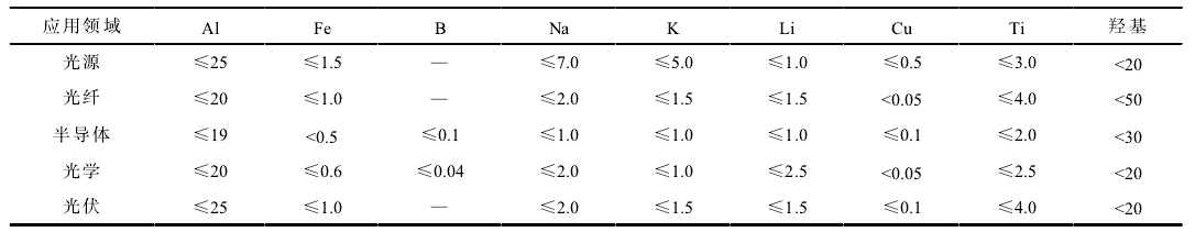 不同应用领域的熔融石英玻璃杂质和羟基含量要求