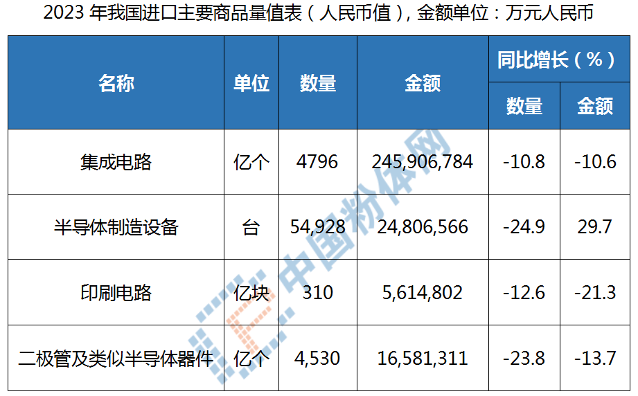 2023年中国累计进叢strong>集成电路4795亿颗,较2022平strong>下降10.8%:strong>进口金额24590.7亿人民币,同毓strong>下降10.6%。而根据国家统计局数据?023年全年,我国国内集成电路产量?514亿块,同比增?.9%、/p>