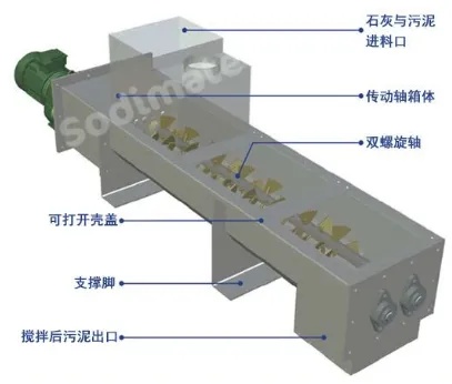 此套MBV搅拌机是成套污泥稳定干化系统的重要组成部分,SODIMATE(索得曼)可设计并生产从生石灰筒仓储存定量出料系统,到污泥加石灰干化搅拌,最后到污泥螺旋输送机的一整套系统、/span>