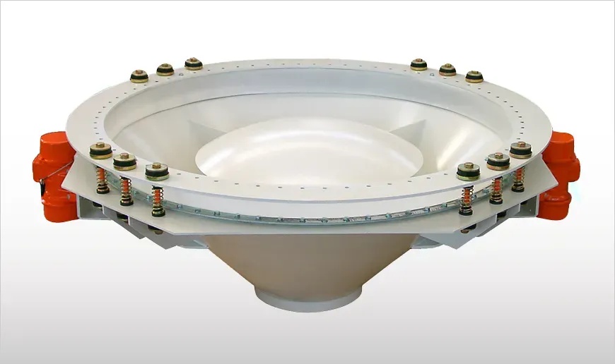 BA活化料斗为圆锥形,通过对料斗或筒仓出料进行振动来实现助流。活化料斗的组件有:在金属板材加工车床上加工的无缝锥体,其材料为碳钢或不锈钢;一?/span>SINT?工程聚合体密封件;组合在料斗上的上、下法兰;用于连接活化料斗和筒仓的悬挂组件以及一至两个振动机、/span>