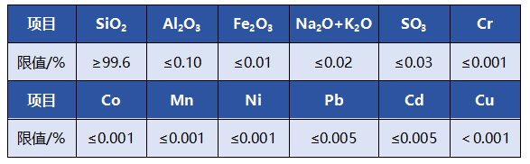 凯盛石英材料(黄山有限公司)发布的企业标准Q/245400 KS 02-2020《TFT-LCD玻璃基板用高纯石英粉》中对TFT-LCD玻璃基板用高纯石英粉产品粒度指标、化学成分指标等进行了规定、/p>