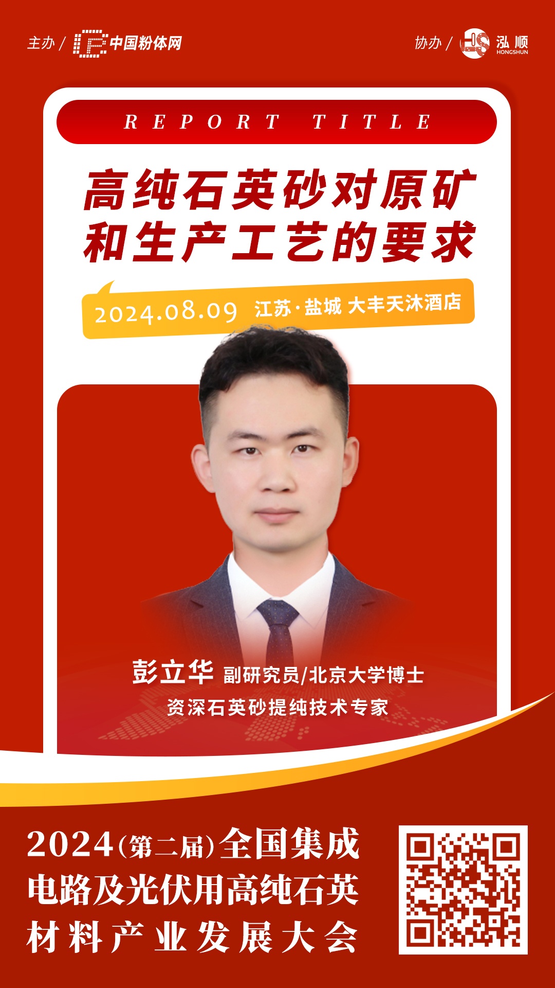 2024??日,由中国粉体网主办的?024(第二届)全国集成电路及光伏用高纯石英材料产业发展大会”将在江苏盐城召开,资深石英砂提纯技术专家彭立华将做《高纯石英砂对原矿和生产工艺的要求》的报告,彭立华?019年北京大学地质学(材料及环境矿物学)博士毕业,现任浙江润优新材料科技有限公司研发总监,深耕高纯石英砂及其制品产业化技术研究十年,届时,他将详细分析石英矿物中的包裹体杂质、矿物杂质、晶格杂质等因素和提纯技术对高纯石英砂生产的影响、/p>
