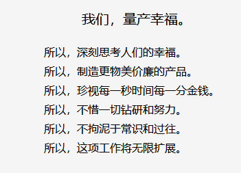 谈到“伟大企业”,我查阅了它的企业愿景和使命,与“量产幸福”的丰田相比,我总感觉“伟大企业”缺少了点不可言说的东西,而这点东西好像又决定了人与机器的本质区别、br/>