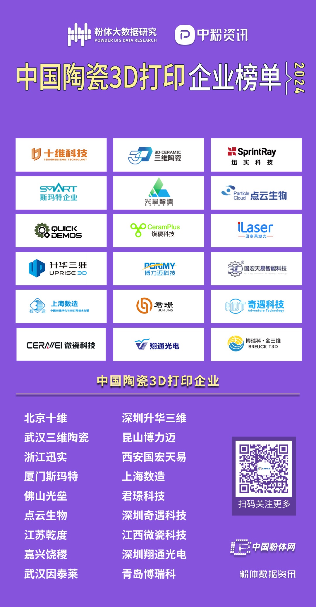 国内陶瓷3D打印企业榜单如下(企业排名不分先后)9/p>