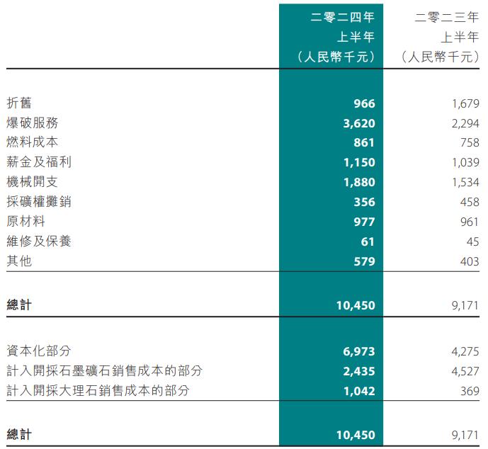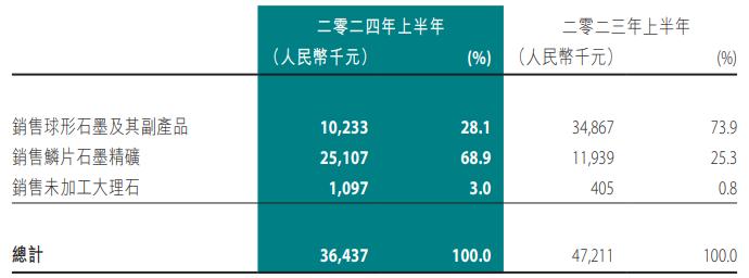 ?024年上半年,该集团主要自(i)销售球形石墨及其副产品;(ii)销售鳞片石墨精矿;及(iii)销售未加工大理石产生收益、/span>