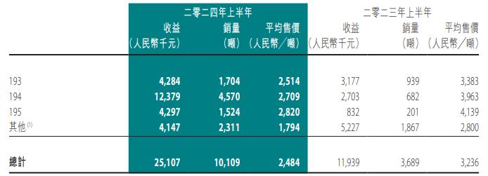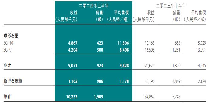 销?/span>球形石墨及副产品所产生收益?023年上半年的约人民?/span>34.9百万元减臲/span>2024年上半年的约人民?0.2百万兂/span>。销?/span>鳞片石墨精矿所产生收益?023年上半年的约人民?1.9百万元增臲/span>2024年上半年的约人民?/span>25.1百万元、/span>