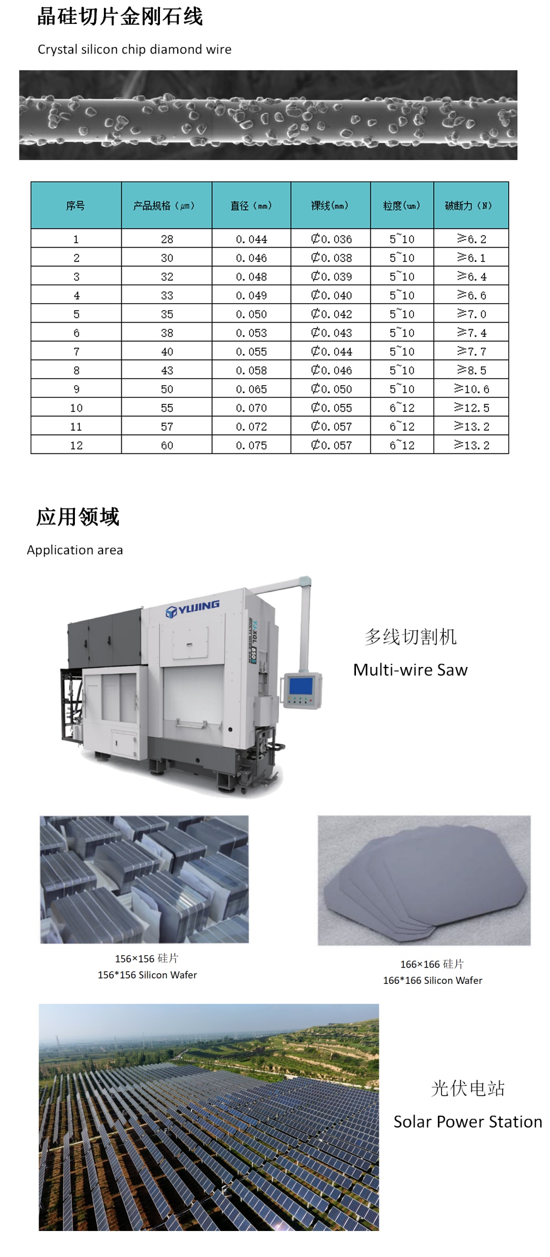 光伏领域:是金刚石线的主要应用领域之一,用于多晶硅切片、单晶硅、晶棒等的切割,对推动光伏产业的发展起到了重要作?/span>。随着光伏行业的不断发展,硅片朝着“大尺寸+薄片化”的趋势发展,这对金刚石线的综合性能及切割应用提出了更高要求,如需要更细的金刚石线、更快的切割速度、更低的轴间距、更精准的张力控制等,以减少硅料切割损耗,提高硅片良品产出率,降低硅片生产综合成本、/span>