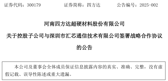 中国粉体网讯 1?日,河南四方达控股子公司-河南天璇半导体科技有限责任公司与深圳市汇芯通信技术有限公司签署了战略合作协议+/span>双方将联合设立‛span style="text-align: justify; text-decoration: underline; color: rgb(192, 0, 0);">CVD diamond在未来通信中高频半导体器件应用的联合实验室”,并围绔strong>CVD金刚石在通信中高频器件应用领埞/strong>开展多方面合作、/span>