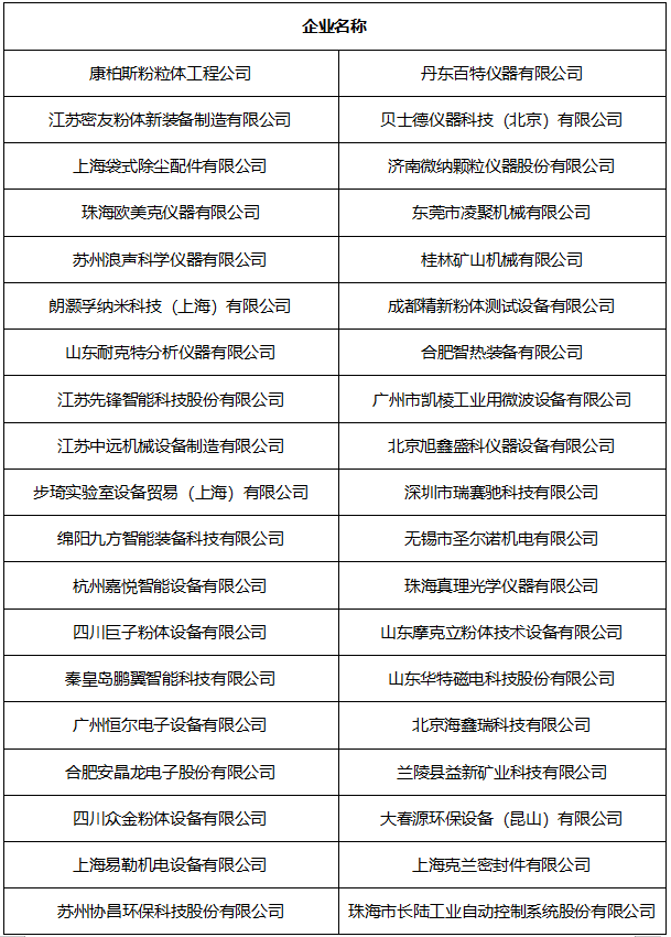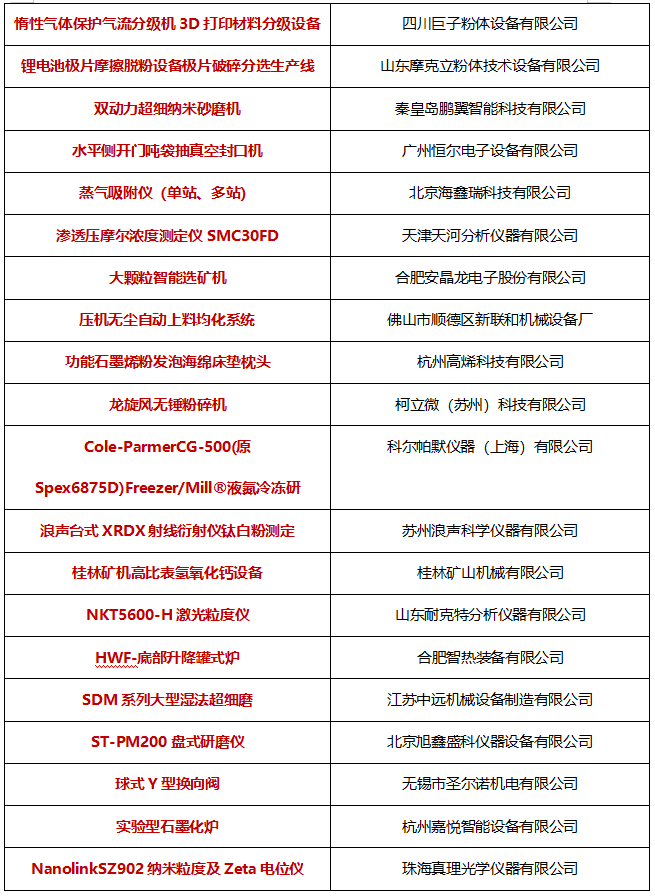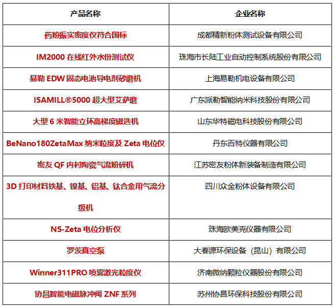 以下ä¸?024年度粉体行业“优秀新产å“â€å’Œâ€œä¼˜ç§€ä¾›åº”商â€è޷奖åå•:
