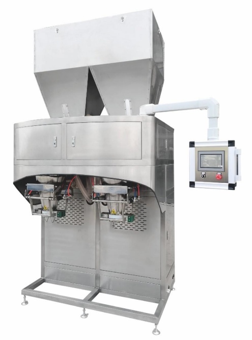 由储料仓、搅拌、螺杆充填、气动夹袋、称重计量、抽尘等系统组成、/p>
