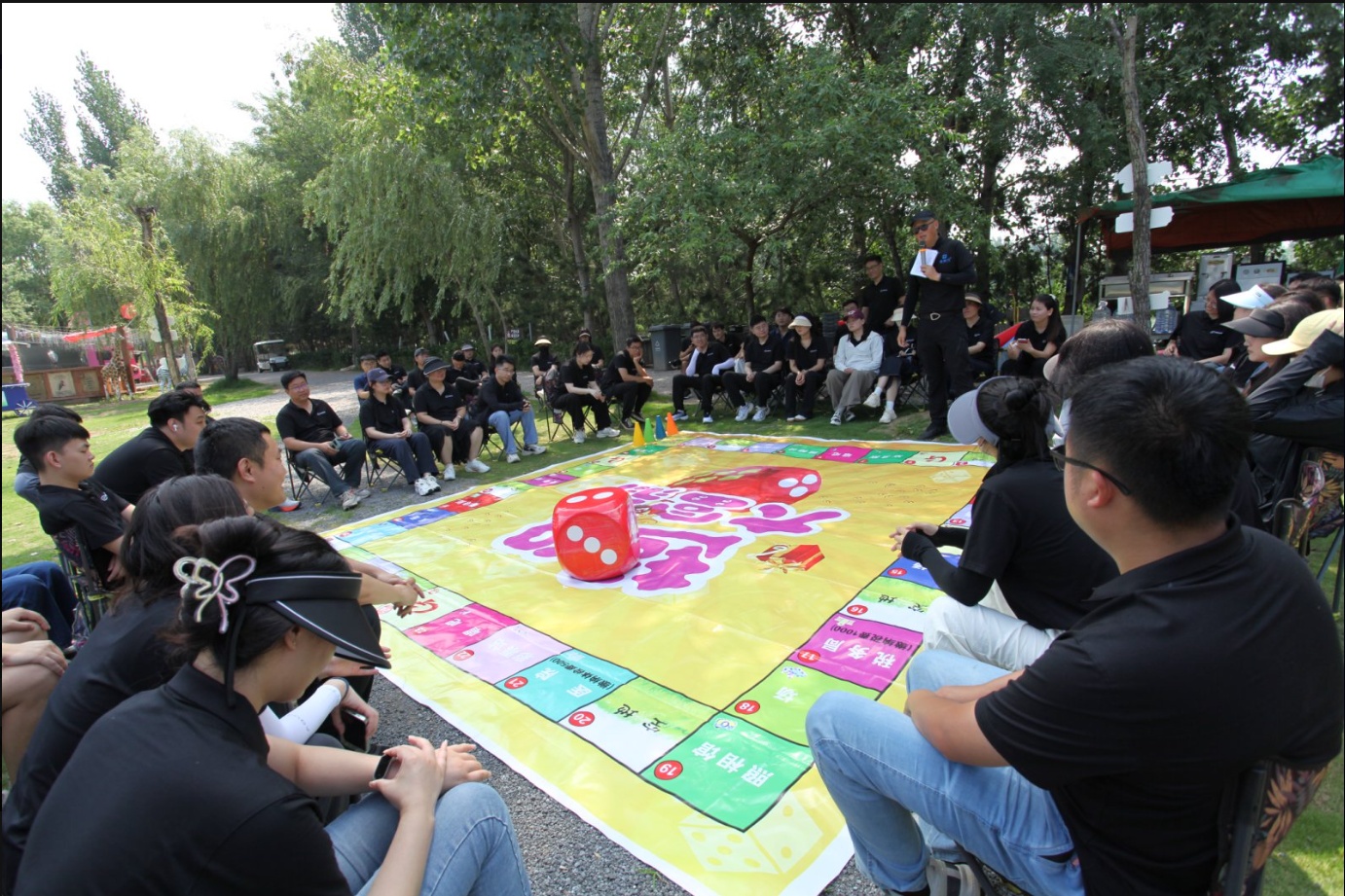 稍事休整后,趣味十足的“超级大富翁”游戏正式拉开帷幕,各小组手持代表启动资金的筹码,兴奋地轮流投掷巨型骰子,随着点数行进在布?quot;神秘事件"?quot;财富机遇"的巨型棋盘上。有人幸运触?quot;双倍收?quot;欢呼雀跃,有人遭遇"缴纳罚款"事件佯装苦恼,大家在模拟商业谈判中斗智斗勇。这场将策略博弈、妙答比拼与团队协作巧妙融合的活动,让大家在欢声笑语中释放了压力,也拉近了彼此的距离、/p>