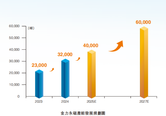 金力永磁当前产能4万吨/平/span>+/span>全球排名前三+/span>2025年启动“年?万吨绿色智造项目”,2027年目标产?万吨,覆盖赣州、包头、宁波三大基地?nbsp;