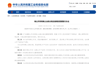 稀土是支撑新一代信息技术、高端装备制造、新能源等战略性新兴产业发展的关键基础材料。此前实施的指令性生产计划管理制度已难以适应行业发展新形势、/span>2024?月,国务院颁布《稀土管理条例》,明确规定国家对稀土开采和冶炼分离实行总量调控,并要求制定具体管理办法。此次三部门联合出台的《办法》,正是对该条例的细化落实、/span>