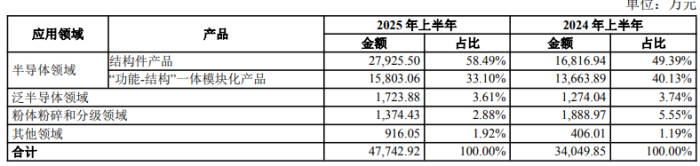 此外+/strong>2025年上半年,受国内消费电子行业和光伏产业温和复苏的影响,公司来自显示面板、LED和光伏等其他泛半导体的结构件产品的收入有所上升、/p>