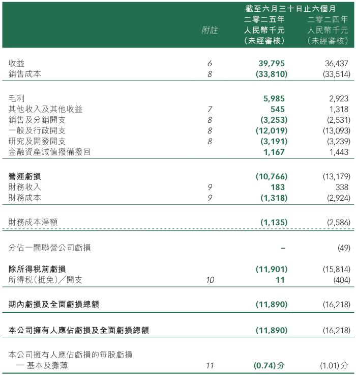 2025年上半年?024年上半年的除税后亏损分别约为人民?1.9百万元及人民?6.2百万元、/span>