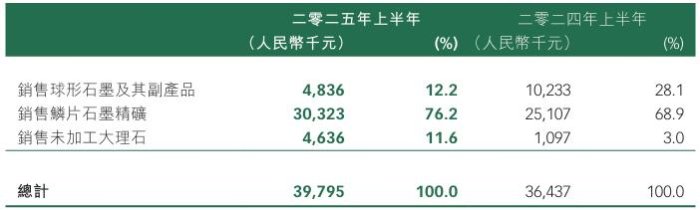 2025年上半年?024年上半年,销售鳞片石墨精矿所产生收益分别占总收益的?6.2%?8.9%、/span>