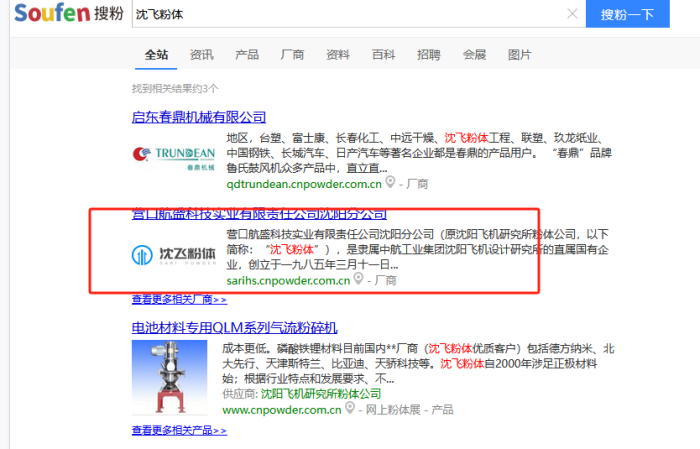 高转化获客:通过精准流量拦截,有效触达有高端粉体加工需求的企业(如新能源材料厂商、军工配套企业),大幅提升询盘质量。例如,某客户搜 “沈飞粉体 时,可直接跳转至公司展台,快速获取定制化方案信息,推动合作洽谈效率提升、/p>