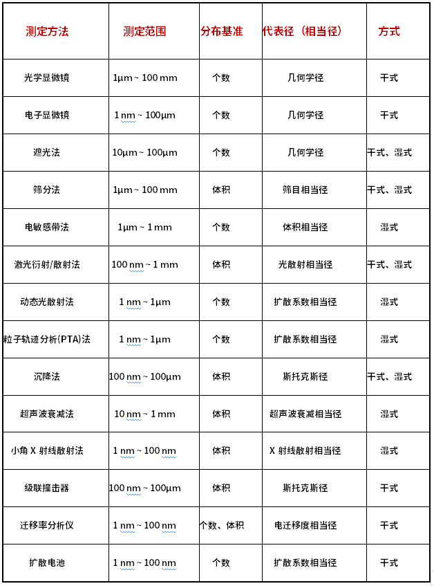 代表性的粒径分布测定方法