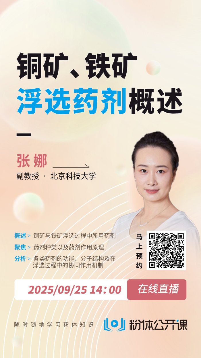 中国粉体网讯在矿产资源开发中,铜矿与铁矿的高效分离提纯离不开浮选药剂的关键作用,它们是实现矿物与脉石分离、提升精矿品位的核心技术支撑。中国粉体网粉体公开课特邀北京科技大学张娜副教授带来精彩课程《铜矿、铁矿浮选药剂概述》,欢迎免费预约观看?/span>