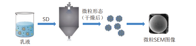喷雾干燥是将液体雾化成小的液滴,然后通过热风除去水分形成颗粒的干燥技术。该干燥过程包括:液体流经喷嘴被雾化,再与热空气接触,使水分高温蒸发,最后回收粉末。目前,喷雾干燥以其高效、简单、经济的特点成为最常用的粉体制备技术、/p>