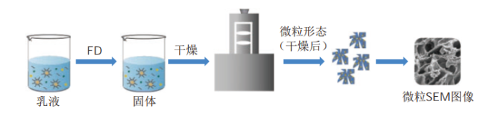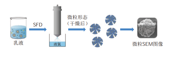 喷雾冷冻干燥过程包括雾化、冷冻和干燥三部分。雾化是指将液体通过喷嘴分解为细小液滴,直接影响最终的颗粒尺寸分布;冷冻是指让雾化的液滴接触低温冷冻液(液氮等)以获得具有均匀冰结晶的冷冻液滴;干燥是将冷冻液滴中的冰晶直接升华形成干燥颗粒的过程、/p>