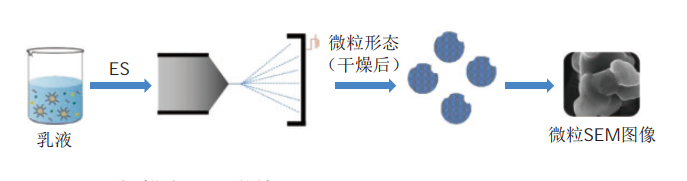 静电喷雾是借助高压电场使液体雾化形成小液滴,溶剂蒸发后形成固体颗粒的技术。该技术要求溶液浓度较低,溶液浓度过高会导致静电纺丝,从而产生纤维而不是颗粒、/p>