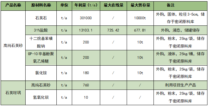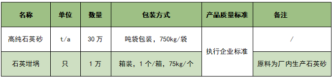高纯石英砂是一种重要的战略性资源,是含石英矿石经加工提纯后,杂质元素含量、包裹体含量、羟基含量以及粒度等达到半导体、光纤通信、光伏、光学、电光源、航天、军工等相关领域要求的石英产品。据该项目环评内容显示,该项目所生产的高纯石英砂,一部分用于厂内石英坩埚的生产(每年消耗高纯石英砂760吨),另一部分用于吨包外售(达产情况下,外售部分为299240t/a)、/p>