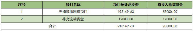 本次募集资金扣除发行费用后,5.3亿元用于光掩膜版制造项目(项目总投?9.31亿元,剩余资金由公司自筹),1.7亿元用于补充流动资金,以缓解业务扩张带来的资金压力、/p>